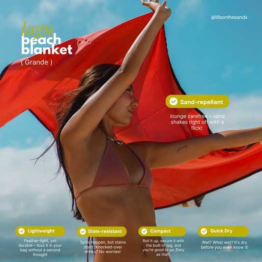 The beach is more than a getaway—it’s a protector. Sand shields coastlines, absorbs wave energy, and supports marine life. Lagu’s sand-repelling fabric ensures that every grain stays put, protecting shores and preserving nature’s balance. Handmade by local artisans since 2012, Lagu is not just a blanket—it’s a commitment to sustainability and Filipino craftsmanship.